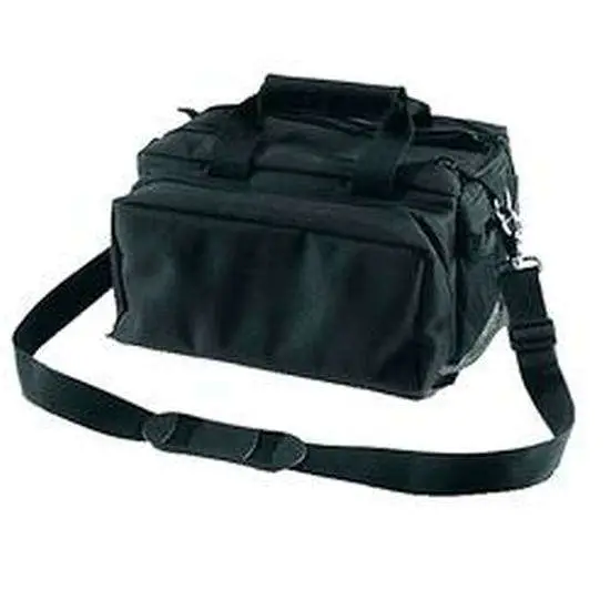 Bulldog's Deluxe Range Bag with Strap is constructed of heavy duty durable nylon with a water resistant outer shell and deluxe padding. Additional features include a large main compartment with a removeable divider, outer pockets for extra storage and an adjustable shoulder strap.