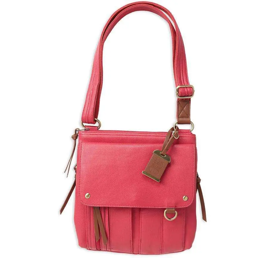 Bulldog's Cross body style purse is designed to fit most small autos and revolvers. It features an universal fit, color matched holster and is made from durable leather. The two separate zippered main compartments features multiple inner compartments which are fully lined.