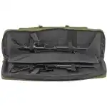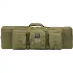 This double rifle case has a green finish and exterior dimensions of 13" L x 37" W x 4" D.
