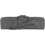 This double rifle case has a black finish and exterior dimensions of 13" L x 43" W x 4" D.