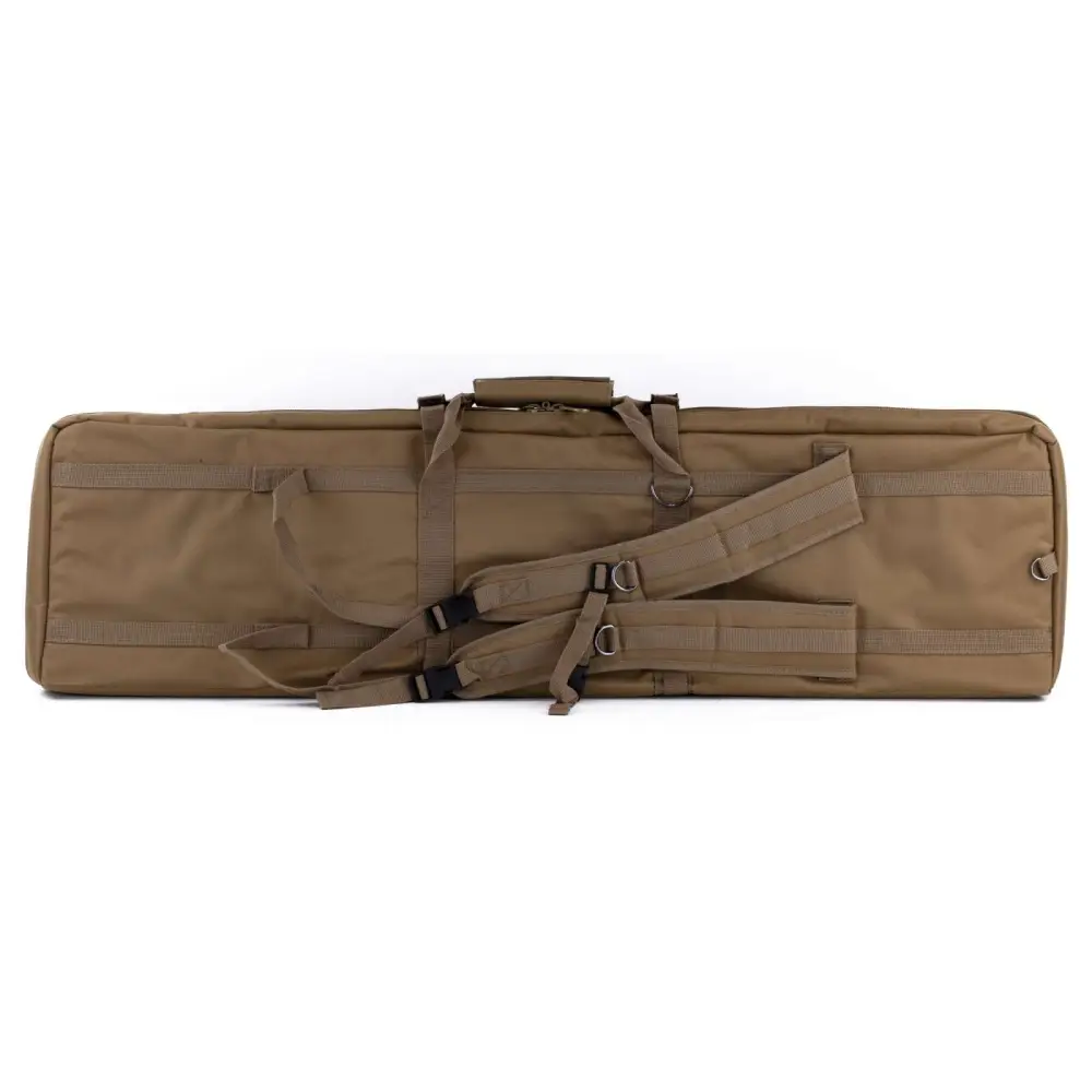 This double rifle case has a tan finish and exterior dimensions of 13" L x 43" W x 4" D.