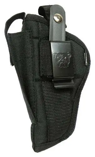 Bulldog's Extreme series holsters have four wall construction. The outer wall fabric is heavy-duty, water-resistant nylon, and the inner wall has a vinyl vapor barrier with deluxe padding and a soft, scratch-resistant fabric. It has a spine protector to keep gun sights from tearing the inner lining. Extreme series holsters feature an ambidextrous clip and belt loop.