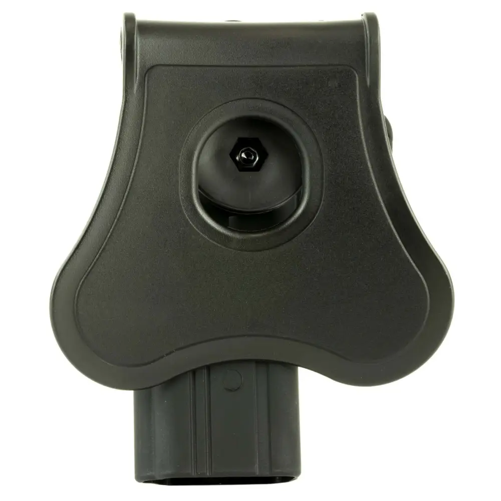 Bulldog's Rapid Release Holster is suitable for civilian, duty and military use. The holster is made of durable, high-tech polymer material with gun-specific design that is fully adjustable to multiple draw positions. Its specially designed locking mechanism provides safe and secure "Level II" retention while offering a one finger "Quick Draw" release.