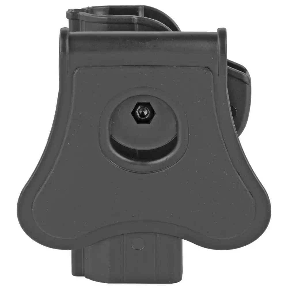 Bulldog's Rapid Release Holster is suitable for civilian, duty and military use. The holster is made of durable, high-tech polymer material with gun-specific design that is fully adjustable to multiple draw positions. Its specially designed locking mechanism provides safe and secure "Level II" retention while offering a one finger "Quick Draw" release.