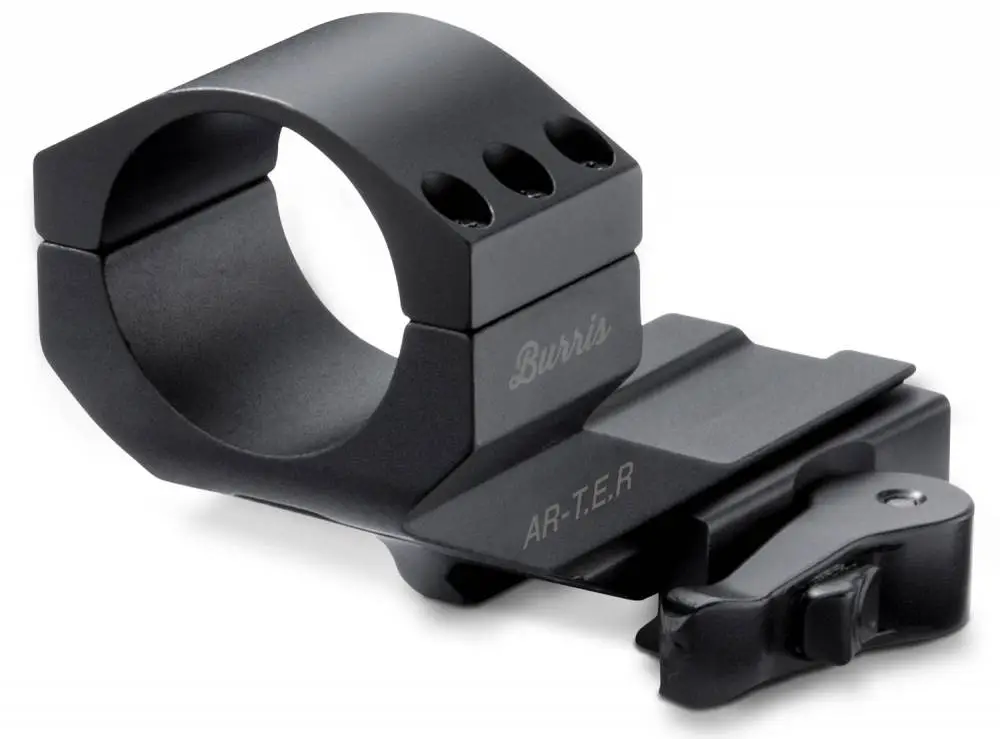 The AR-T.E.R. Extension Ring aids in mounting AR optics on short stocks. It's milled from 1 piece of aluminum and includes a quick-detach lever for easy attachment and removal.
