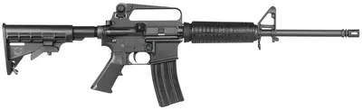 The Bushmaster XM-15 Carbine provides heavy-duty performance whenever duty calls. The heavy profile chrome moly vanadium steel barrel is manganese phosphate-finished to insure protection against corrosion and rust, and the carbine features a threaded birdcage flash suppressor and a 6-position telescoping stock. The upper and lower receivers are machined from 7075-T6 aircraft aluminum forgings for light weight and added strength. The carbine ships with a chamber flag, sling, and a 30-round magazine. This model has a 16" barrel and the A2 upper receiver features a fixed carry handle and has a 300-800 meter rear sight system with 1 MOA elevation and 1/2 MOA windage adjustments.