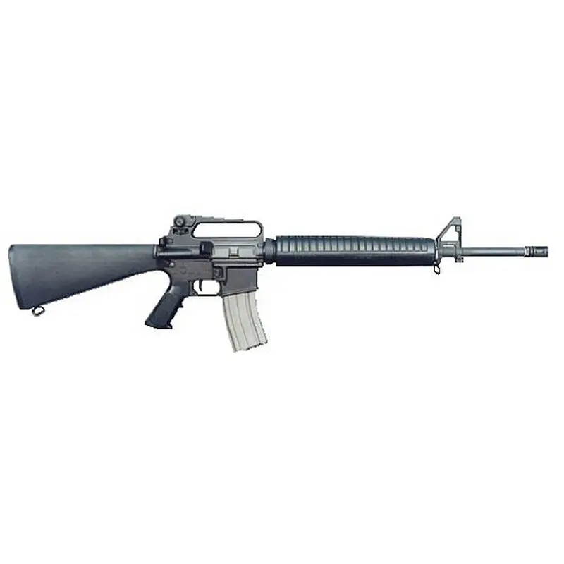Bushmaster's Target model qualifies as the standard of the line, available with heavy profile match grade barrels of either chrome lined, chrome moly steel, or polished 416 stainless steel. The A3 type uses a flat top upper receiver incorporating a picatinny rail which allows easy attachment of accessory scopes, sights and optic devices. The upper and lower receivers are precision machined from forgings for maximum strength. The upper receiver includes a forward assist device and an integral cartridge case deflector. The lower receiver controls include a bolt catch assembly, magazine release button, and safety selector with indicator markings on both left and right sides. The ribbed front hand guards, molded of polymer thermo set composite, offer increased control and heat dissipation. The pistol grip and buttstock are also molded of thermo set composite, and the buttstock features a storage compartment for small parts or cleaning gear. The Bushmaster target rifle is shipped complete with 30-round magazine, safety and operational manual, and carrying sling.