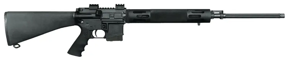This 5-round specialized Bushmaster is built with a superb 24" DCM competition barrel, and all the "goodies" requested by the varmint specialist. Additional features include a competition crowned muzzle with a 1 in 9" twist for optimum performance with most varmint cartridges/full length fluting for increased cooling and reduced weight. A smooth, two-stage competition trigger with 4.5 lb. pull focuses the shooter's attention on the target. The V Match tubular forend free floats the barrel from the action all the way forward while special cooling vents increase barrel heat dissipation.