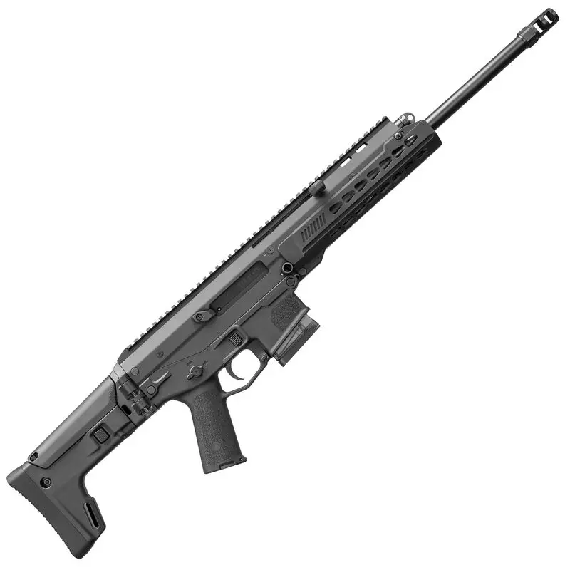 This rifle-length model in 450 Bushmaster offers ultimate stopping power for deer, bear, or feral hogs. It has a black finish, 18.5" barrel with a muzzle brake, and includes a 5-round polymer magazine.