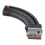 Butler Creek's 25rd magazine for the Savage A-Series rifle can be loaded traditionally or by using the red loading assist lever on the side. Featuring a stainless steel spring, metal header and feed lips for reliable feeding; remaining round indicator on the side lets you know when the magazine is running short of rounds. Connect two magazines together for double the firepower.