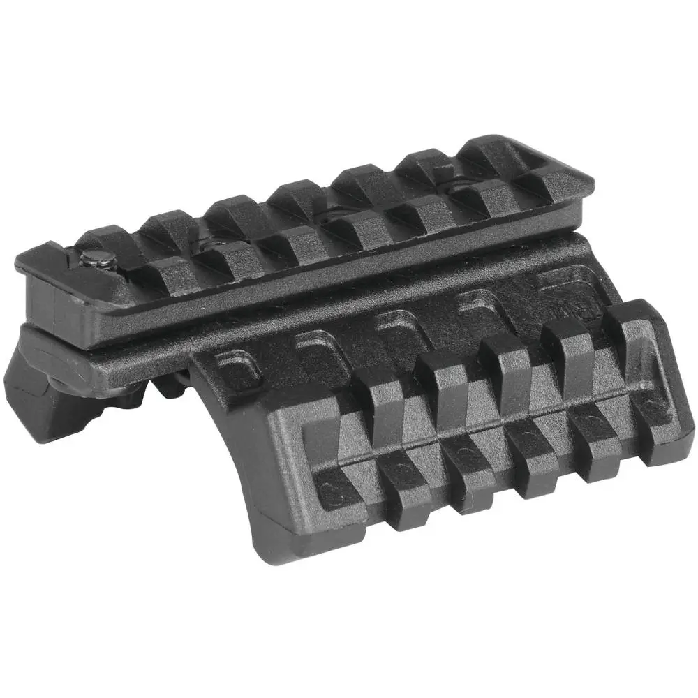 This versatile Triple Rail Mounting system has a single 3" Picatinny rail and two 2.5", 45-degree Picatinny rails. The rails can be used together or independently of each other. Use all three rails on lower handguards for grip with easy thumb access to light and laser on side rails or use 3" rail on bottom and the 2.5" rails on top. The 45-degree rails will not interfere with iron sights. The rails mount on the upper and lower vent holes of most existing standard handguards. Constructed of high-density polymer, the Triple Rail System fits M16/AR15/M4.