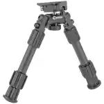 The Accumax Premium Carbon Fiber Bipod securely attaches to any sling swivel stud. The carbon fiber legs are super strong and light weight, with non slip rubber feet Legs lock forward at 90 degrees or backward with spring loaded buttons, twist lock for fast incremental leg length adjustment. Secure leg stops prevent legs from overextending.Features omni-directional mount for 360 degree panning and lever lock handle for fast adjustment.