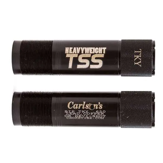 Carlson's TSS Turkey Choke Tubes are optimized for Federal Premium Heavyweight TSS Turkey Loads but also work exceptionally well with other manufacturer's turkey ammunition (Smaller shot size 7-9). The Federal Premium's Heavyweight TSS Turkey Load has an incredibly high pellet count in both 7 and 9 shot, along with the ability to carry energy further, makes them ideal for 12 and 20 ga. Tungsten Super Shot (TSS) has a 22% heavier density than heavyweight shot and a 56% heavier density than traditional lead shot. It puts the maximum amount of pellets possible in a 10" circle at 40 yds. The 12 and 20 ga. shells will include the FliteControl Flex wad that gives hunters the ability to shoot any choke tube they prefer. Long-range turkeys don't stand a chance. *NOTE- Not for use with steel shot.