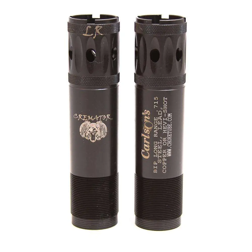 Carlson's Cremator Choke Tubes feature our new Triple Shot Technology and is offered in close mid and long range constrictions. TST is a series of three graduated rings in the taper section of the choke tube, that allow a more gradual transition from the shotgun bore to the final constriction. The Cremator offers reduced pellet deformation, less flyers, more dense patterns, wrench-less installation, quick removal and muzzle protection. Made in the USA. *NOTE- Optima HP and Remington Pro Bore Long Range cannot be used with any steel shot larger than #2.