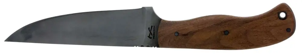 The Case Winkler Skinner features a flat ground 80CrV2 carbon steel fixed point blade with a distal taper and Caswell finish. It utilizes an American black walnut handle and comes with a leather sheath.