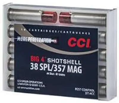 Centerfire handgun shotshells have proven themselves as highly practical options for close-range pests. CCI's Big 4 loads extend the range and capabilities of these downsized shotshells, thanks to a payload of No. 4 shot. The resulting energy and patterns enable Big 4 loads to take down larger pests at longer distances, making them even more useful.