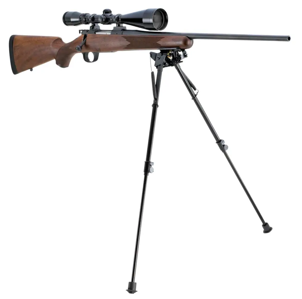 This Pivot Bipod is compact and lightweight with no assembly required, attaching to the sling swivel stud of most bolt action rifles. The Pivot Bipod features telescoping legs with spring return and a pivot with rapid adjust lever for making quick sight adjustments on uneven terrain. It extends quickly and easily making target acquisition quicker and easier now matter how uneven the terrain.