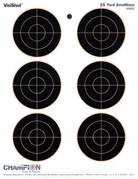 Designed for 25 yard sighting-in for small bore firearms, this 8.5" x 11" target features six (6) 3" bullseyes per page, 10 pack.
