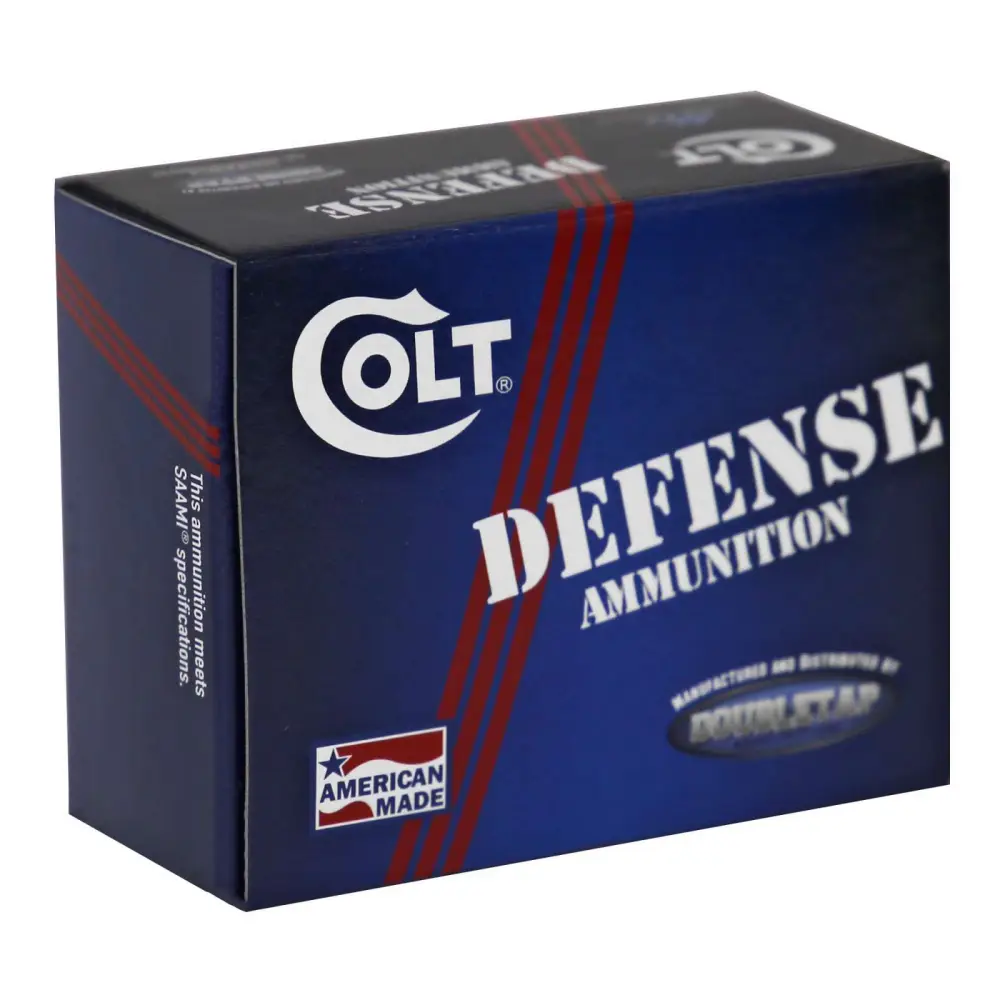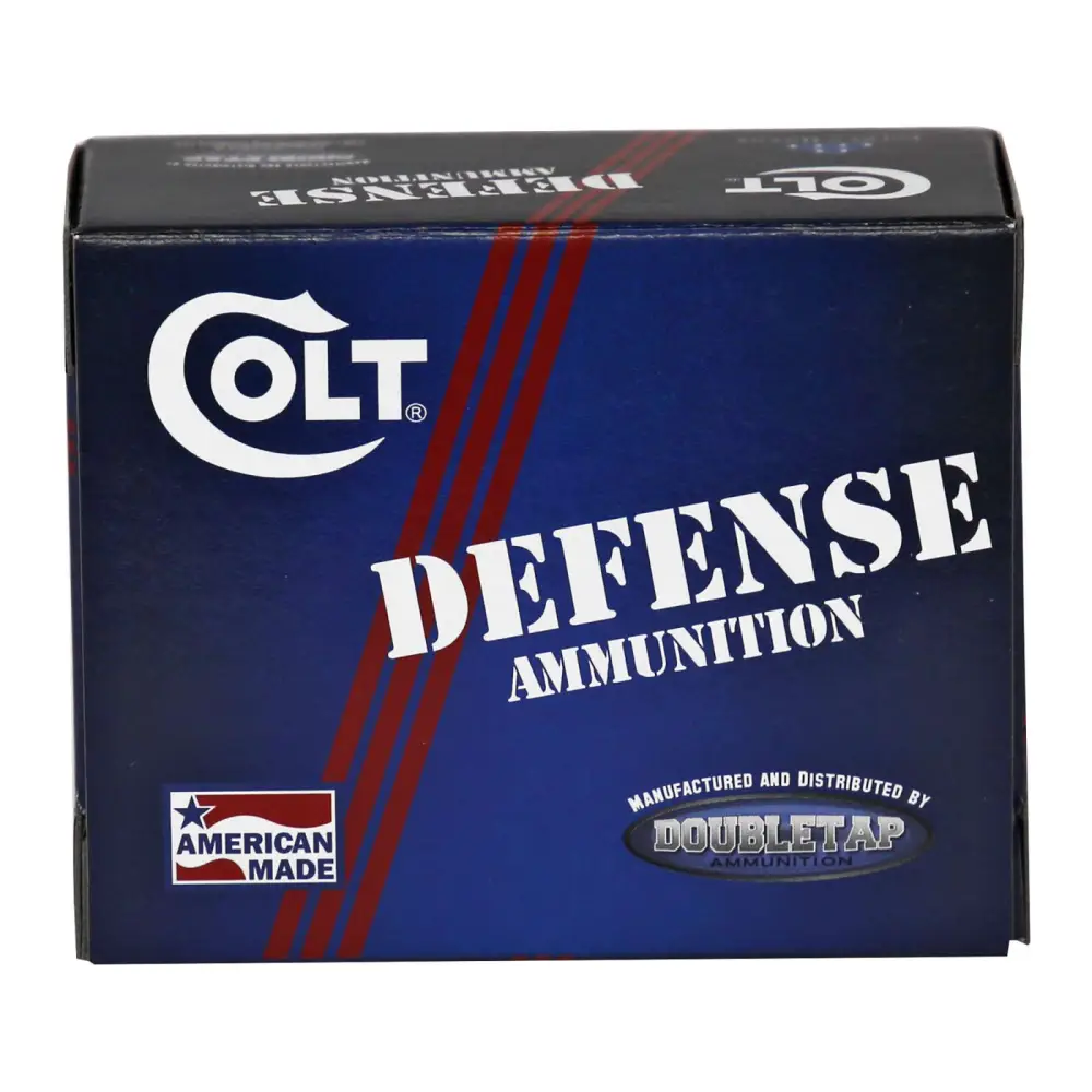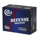 Colt's Defense ammunition is ideal for personal and home protection. It features a jacket hollow point bullet and brass casing.