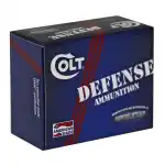 Colt's Defense ammunition is ideal for personal and home protection. It features a jacket hollow point bullet and brass casing.