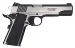 The Colt Combat Elite Government is a duty ready pistol. The Government has full stainless steel construction with a unique two tone PVD finish which makes for a striking corrosion package. The Dual Spring Recoil System reduces felt recoil while extending the recoil spring life. Features a genuine Novak night front sight and Novak Low Mount Carry night sight. Safeties are Ambi-Extended Thumb Safety, Upswept Beavertail Grip Safety and Series 80 Firing Pin Safety. Solid Aluminum trigger with a trigger weight of 4.5-6 lbs. Solid Aluminum trigger with a trigger weight of 4.5-6 lbs. Specs- OAL 8.5", OAH 5.5" and OAW 1.25"; barrel technical specs- 1:16 LH, 6 Groove N.M. and locked breech operating system. Accessories include- 2 8rd SS magazines, cable lock and instruction manual.