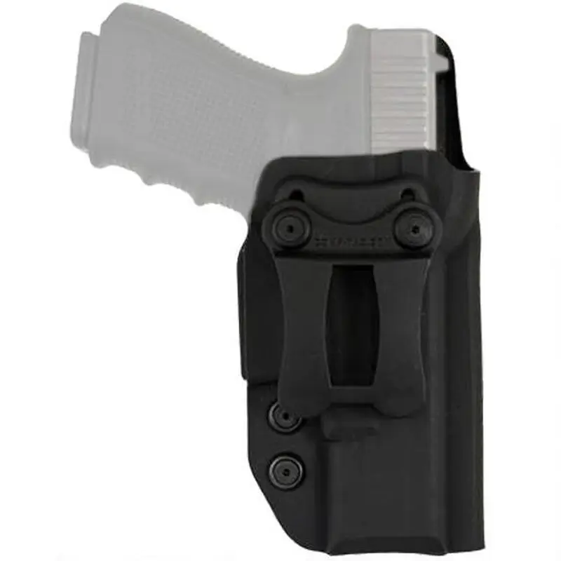The Infidel Max Holster is an inside the waistband holster that is designed to work with the Infidel clip or Infidel Loops in any cant configuration. The Infidel Max Holster is a Kydex holster with cant adjustment holes to allow the user to change from a reverse cant, speed cant and FBI forward cant. The all Kydex body provides a rigid material that is custom fit to each firearm and maintains its shape even with the pistol un-holstered. The single 1.50" polymer clip allows for easy on and off holster wear and the retention adjustment holds the holster tighter or looser depending on your setting. Holster fits Sig P320/250 Compact 9mm/40.