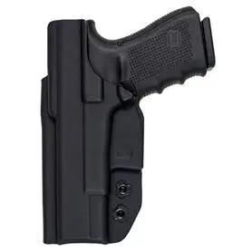 The Infidel Ultra Max Holster is an inside the waistband holster that is designed for concealed carry. It is designed with cant adjustment holes to allow the user to change from a reverse cant, straight drop speed cant and FBI forward cant. The Ultra Max holster can mount to your belt with the Infidel clip or Infidel Loops in any cant configuration. The Infidel Max Holster is a Kydex and leather hybrid holster, the Kydex shell provides a rigid material that is custom fit to each firearm and maintains its shape even with the pistol un-holstered. The cow hide leather backing provides a soft flexible material that does not rub or pinch. The Ultra Max is an interchangeable body, you can buy a new Kydex shell for all your guns and keep the same holster.The single 1.50" polymer clip allows for easy on and off holster wear and the retention adjustment holds the holster tighter or looser depending on your setting. Holster fits Glock 26/27/28/33.