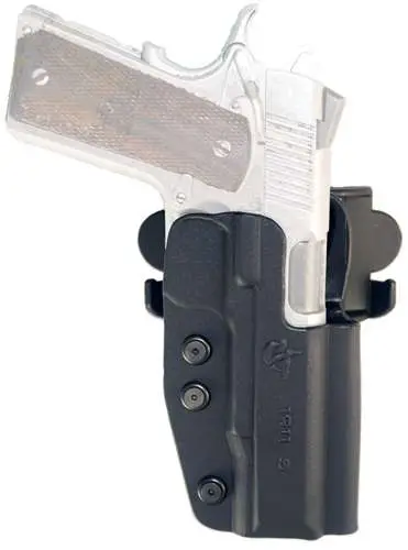 The International is an outside the waistband (OWB) holster ideal for competition shooting, concealed carry or general use. It is cut down in the front to fit most optic sight and has a .5" tall sight rail to fit most suppressor/optic co-witnessing sights. The all-Kydex body provides a rigid material that is custom fit to each firearm and maintains its shape even with the pistol un-holstered. The smooth, low friction surface allows for a fast draw and easy one-handed re-holstering of the firearm. With a modular mounting design giving the user 16 holster options in 1. The International includes belt mount, paddle mount and drop offset piece options. It's cant adjustable, belt width adjustable 1.5" - 2" and retention adjustable. Note-Once the adjustment tab has been removed it cannot be reattached. This model is compatible with 1911 5".