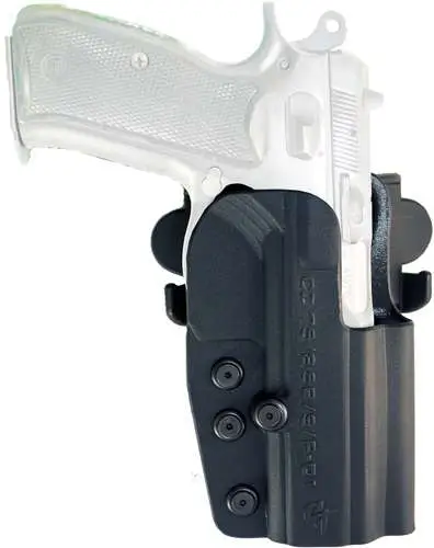 The International is an outside the waistband (OWB) holster ideal for competition shooting, concealed carry or general use. It is cut down in the front to fit most optic sight and has a .5" tall sight rail to fit most suppressor/optic co-witnessing sights. The all-Kydex body provides a rigid material that is custom fit to each firearm and maintains its shape even with the pistol un-holstered. The smooth, low friction surface allows for a fast draw and easy one-handed re-holstering of the firearm. With a modular mounting design giving the user 16 holster options in 1. The International includes belt mount, paddle mount and drop offset piece options. It's cant adjustable, belt width adjustable 1.5" - 2" and retention adjustable. Note-Once the adjustment tab has been removed it cannot be reattached.This model is compatible with CZ 75/85/PO1/SPO1.