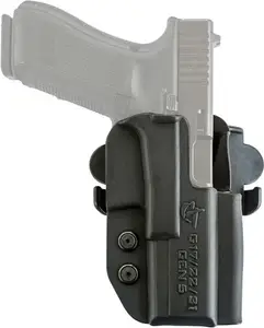 The International is an outside the waistband (OWB) holster ideal for competition shooting, concealed carry or general use. It is cut down in the front to fit most optic sight and has a .5" tall sight rail to fit most suppressor/optic co-witnessing sights. The all-Kydex body provides a rigid material that is custom fit to each firearm and maintains its shape even with the pistol un-holstered. The smooth, low friction surface allows for a fast draw and easy one-handed re-holstering of the firearm. With a modular mounting design giving the user 16 holster options in 1. The International includes belt mount, paddle mount and drop offset piece options. It's cant adjustable, belt width adjustable 1.5" - 2" and retention adjustable. Note-Once the adjustment tab has been removed it cannot be reattached. This model is compatible with Glock 17/22/31 G5.