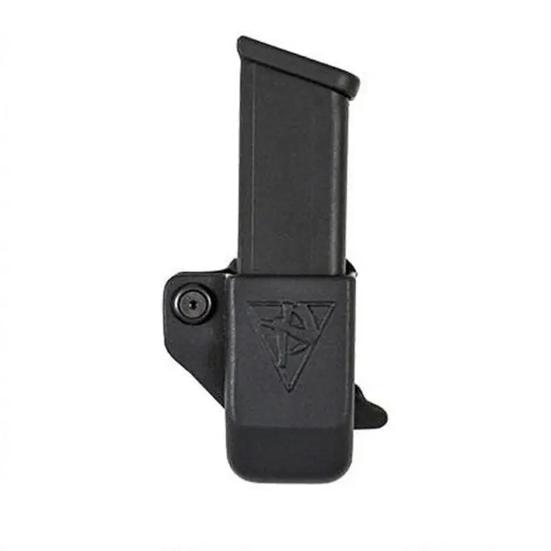 The Single Magazine Pouch is an all Kydex magazine pouch which gives a smooth friction free surface perfect for a quick reload. The Single Magazine Pouch is a single piece of Kydex that is folded over to create a belt clip that can slide down over the top of your belt to put on the belt quickly and take off the belt easily. A retention screw allows you to adjust how tightly the magazine pouch grips the magazine. Single magazine pouch fits a 1.5" belt width and has a retention screw for easy adjustment. The reversible design allows the magazine to sit bullets facing rear or facing forward in the same magazine pouch. The magazine pouch is RSC (Left Handed Shooter). Fits a Glock 9/40, .45 Gap.
