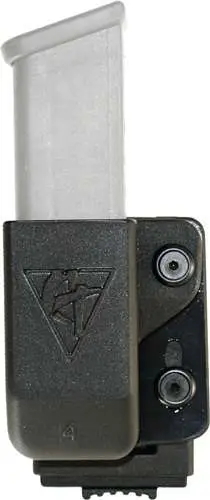 Comp-Tac PLM Mag Pouches are made of 100% Kydex for the smoothest, fastest draw. Perfect for gun competitors or any shooter who would like to carry an additional magazine while at the range. The push-button locking mount (PLM) attaches to belts with a simple push of a button. When attached the button slides horizontally to lock the mechanism. With 9 mounting holes this magazine pouch has 270 cant adjustment. Mount can be adjusted in 1/4" increments from 1/4" to 2 1/4". NOTE: These magazine pouches are reversible allowing the customer to carry their magazine with the bullets facing forward or rearward. If you order a RSC(Left handed Shooter) the retention screw will be toward the rear of the body when carried on the users right side. Fits Glock 9/40/357, .45 Gap.