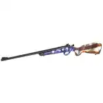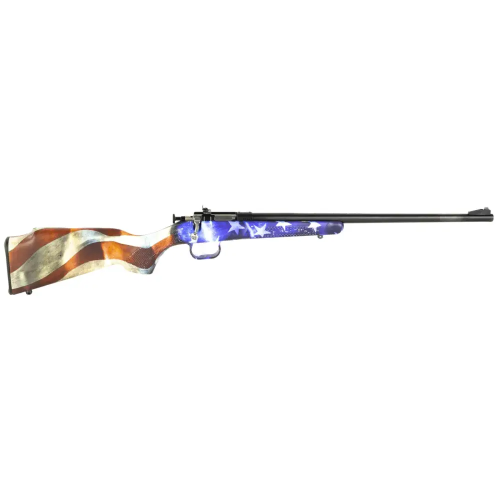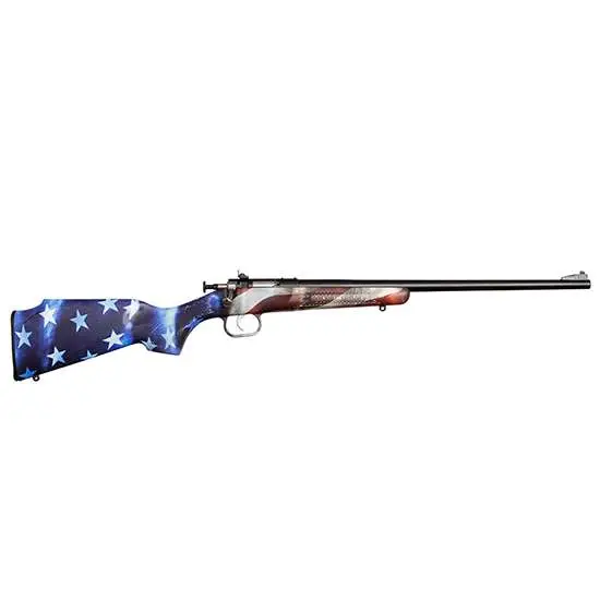 The One Nation single shot rifle features a manual cocking safety, an "One Nation" dipped synthetic stock, and adjustable peep sights.
