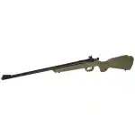 This model has a synthetic desert tan stock with a blued barrel.