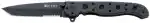 Arguably one of the best knife designs to come along, and one of the best values in the work and sport knife world, here's a cutting tool design that just makes good sense. Adapted directly from the M16 platform, the M16-Z EDC (Every Day Carry) was expressly developed with the value conscious user in mind. With the functional design Kit Carson is known for, this knife is built upon a dual stainless steel liner InterFrame and glass-filled nylon back spacers. Textured glass filled nylon handle scales complete this formidable 4" handle assembly with Torx fasteners throughout. The overall profiling and body contouring make for a very strong comfortable grip. The 3" blades are fashioned from high-carbon stainless steel (8Cr15MoV, 55-57 HRC) for optimum toughness and edge holding ability in a bead blasted or black EDP finish. It is available as a razor-sharp plain edge spear point or combined razor-sharp/Triple-Point serrated tanto. The Carson Flipper also serves as a finger guard in the open position. Factor in the patented AutoLAWKS automatic knife safety and you have yourself a virtual fixed blade when blades are locked open. It also has dual thumb studs and a removable stainless steel clip.