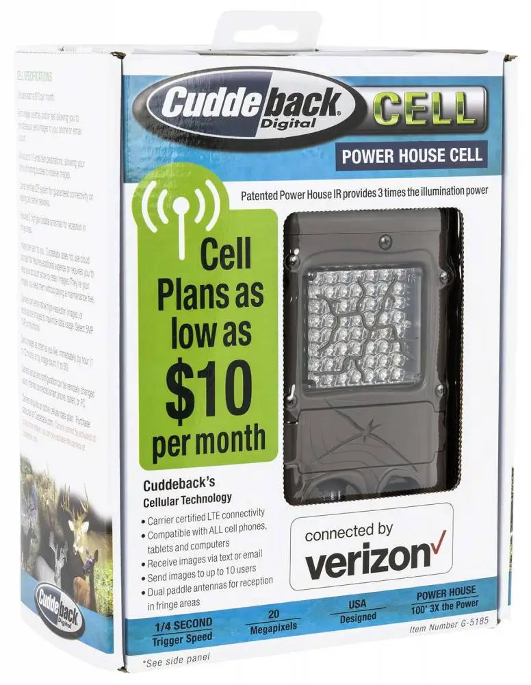 The Cuddeback Power House Cell is compatible with all cell phones, tablets and computers. Features dual paddle antennas for reception in fringe areas; IR provides 3x the illuminator power; carrier certified LTE connectivity- receive images via text or email, send images to up to 10 users.