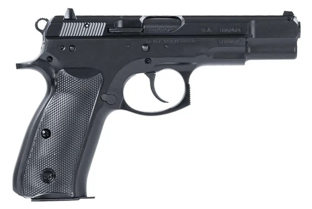 This model is a decocker version of the basic CZ 75 B model. The decocking lever mounted on the left side allows the hammer to be easily lowered on a loaded chamber for a safe "hammer down" carry. CZ 75 B is used by more governments, militaries, police and security agencies than any other pistol in the world. It features all steel construction, a high capacity double column magazine, hammer forged barrel, and ergonomic grip and controls. It has a slide-in-frame design for better recoil control, and 3-dot sighting system. It has a smooth double action and crisp single action.
