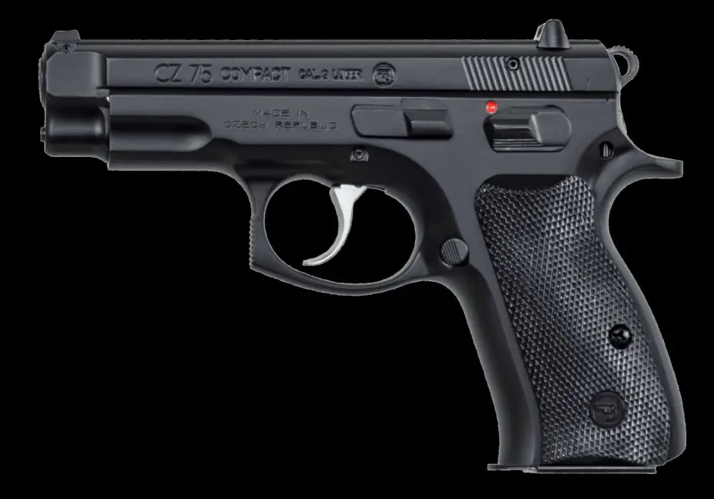At 5" tall with a barrel length of just under 4", the Compact model shaves a little more than 3/4" off the length and about 1/2" off the height of the full-size CZ 75. Its reduced size allows it to readily disappear under regular clothing. The CZ 75 DA/SA action with a manual safety lever provides the user with two options for carry: hammer-back with the safety on for single action operation or manually decocked for a double action first shot with no need to remember to take off the safety before firing. There is a safety stop on the hammer as well as a firing pin block safety. Because the 75 Compact retains the steel frame of the original 75, only 2.4 oz of weight is lost, making it the softest-shooting compact in the CZ 75 line.