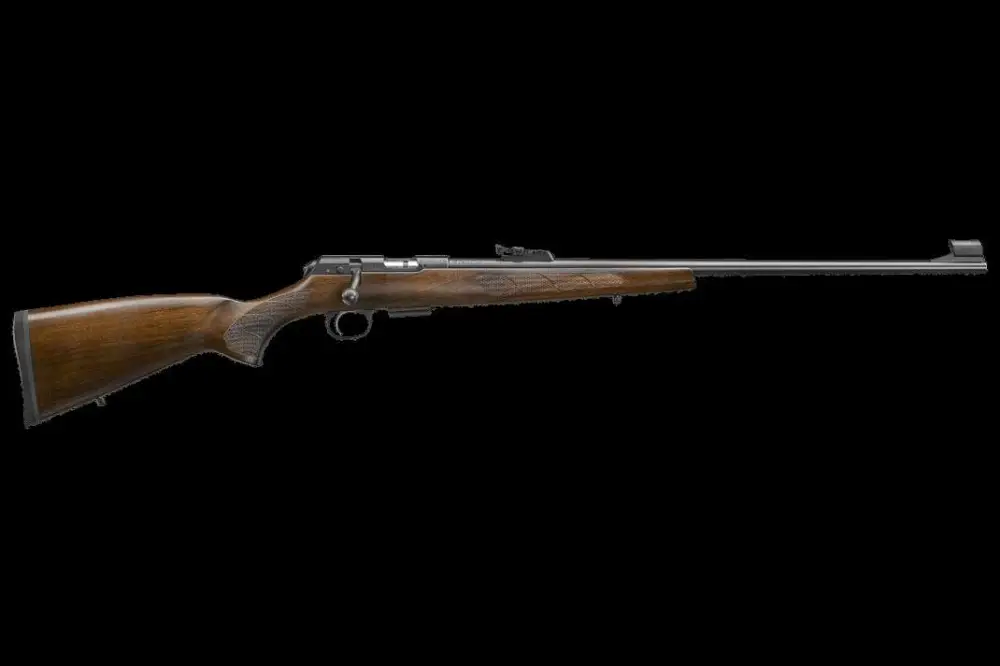 Designed in the European style, the Lux has a hogback stock fashioned from Turkish walnut. With a cheekpiece and comb ideal for use with its crisp iron sights. Like all 457's, it has an 11mm dovetail for mounting optics and can be quickly and easily swapped to a different chambering with the addition of a second barrel set. In addition to the receiver-mounted, push-to-fire safety, we chopped almost an inch of length from the action and slab-sided it to reduce its footprint and weight. One 5rd magazine is included.