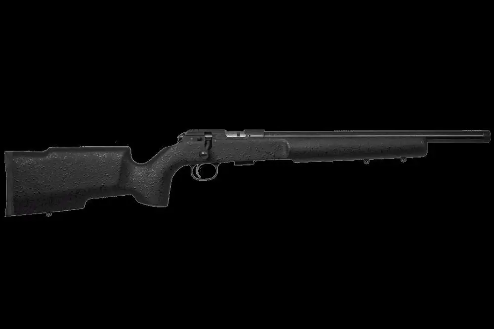 The Pro Varmint has a heavy 16.5" barrel threaded 1/2x28 for use with a suppressor or other muzzle device. Riding in a black-painted laminate stock, it incorporates features found on much more expensive stocks. In addition to the receiver-mounted, push-to-fire safety, we chopped almost an inch of length from the action and slab-sided it to reduce its footprint and weight. The stamped bottom metal of the 455 is gone, swapped for a classy two-piece interlocking system. To make scope fitment easier, we ditched the 90 degree bolt rotation in favor of 60 degree, allowing for larger ocular bell diameters with lower ring heights. To top it all off, the 457 now features a trigger adjustable for weight, creep, and over-travel.