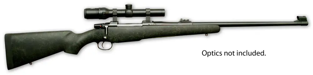 The 550 Safari Magnum is a classic go-to for African professional hunters. With the controlled-round feed of the Mauser system, there's no chance to short shuck the action when under stress. It features a square bridge receiver, cold-hammer-forged, lapped barrel, integral 19mm scope base, two-position safety, and a single set trigger. The American Safari Magnum model is built on CZ's 550 Magnum action and an ideal choice for dangerous game. Its American-styled stock has a full-length aluminum bedding block, high flat comb, and a round forend that won't snag. QD sling studs are mounted into the stock, and a thick rubber butt pad helps tame recoil. Other features include 3-leaf express sights, and a single set trigger. This 375 H&H Magnum model has a 25" blued barrel and black synthetic stock.