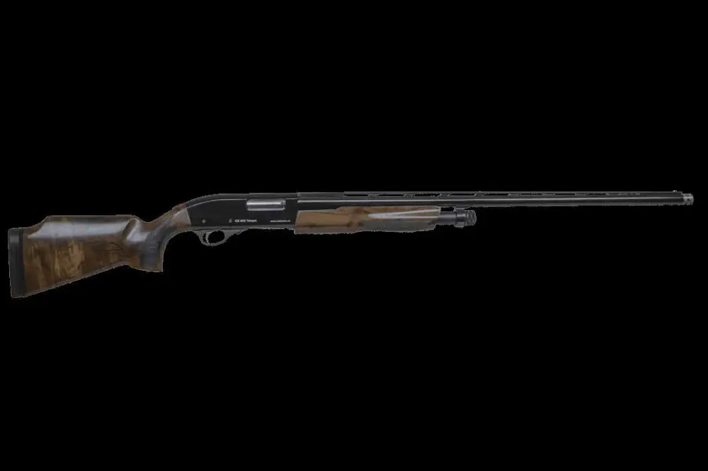 CZ's Target model features a select grade Turkish walnut wood with a glossy oil finish and a Monte Carlo style.This model also features a blue metal finish, tuned trigger system, and raised vent rib. A set of extended chokes and a pair of Bradley-style white beads round out the package. It also features a Crossbolt safety, 32in barrel, and has a length of pull of 14.5in.