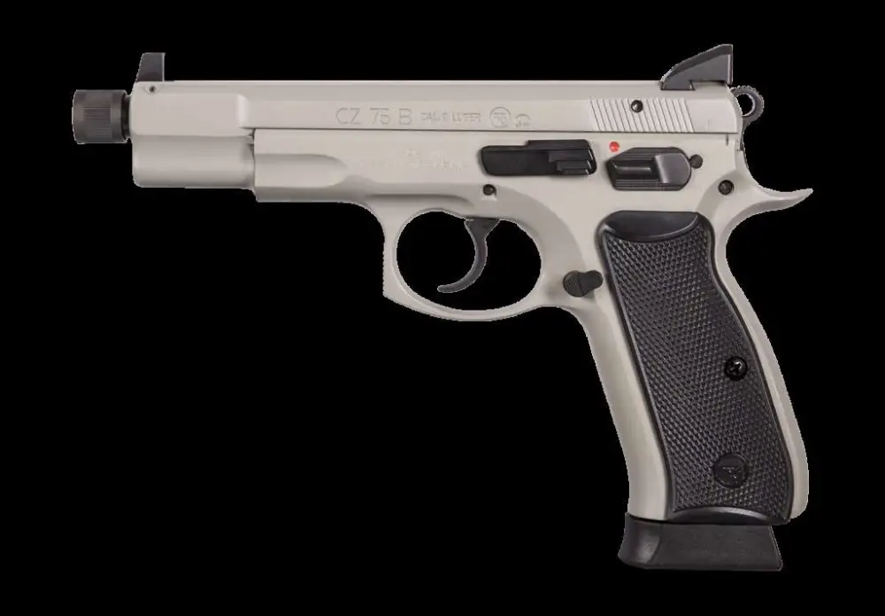 This Urban Grey Suppressor-Ready pistol is clad in urban gray (a mix of gray and FDE). It features a threaded barrel, high suppressor sights with tritium lamps, and extended capacity magazines. CZ Urban Gray pistols are a direct response to customer requests for more suppressor-ready options. A further evolution of the 75 B Omega, the convertible version allows users to swap from decocker to safety operation in the same manner as P-07/P-09 pistols. Using the same simplified, more robust variation of the 75's trigger system as the previous Omega, trigger parts use an interlocking design that allows for easy disassembly and reassembly without the need for tools. Not only does this simplify maintenance, the trigger parts themselves are made of different materials to enhance durability, operation life, and reliability.