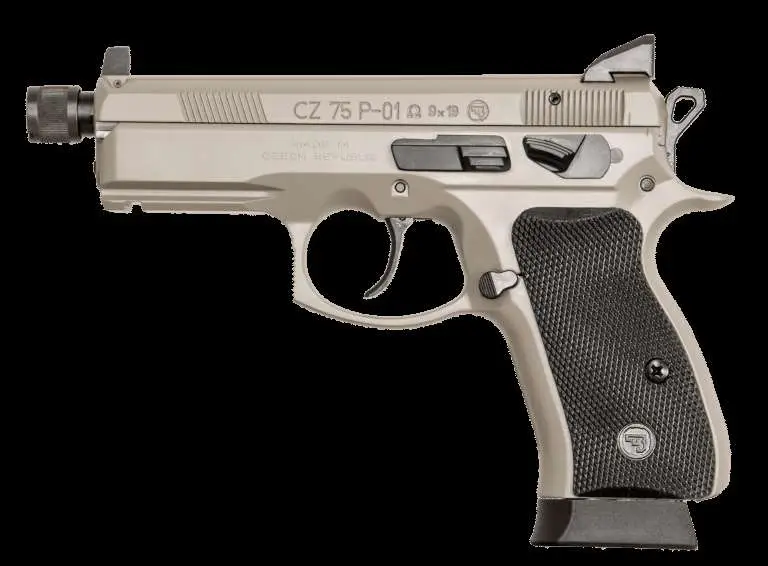CZ's P-01 Omega is part of the Urban Grey Suppressor-Ready Series. This pistol is clad in urban grey (a mix of grey and FDE). The Omega Convertible allows users to swap from decocker to safety operation in the same manner as the popular P-07/P-09 pistols. It uses a simplified, robust trigger system as the previous Omega. The trigger parts use an interlocking design that allows for easy disassembly and reassembly without the need for tools. The components of the P-01 are completely interchangeable, with no individual fitting required. Designed for LE and Military duty, the compact size and reduced weight due to its forged alloy frame make the P-01 ideal for discrete carry as well. The frame has an integral 1913 accessory rail that easily accepts any of the industry-standard lights and lasers to assist low-light use. This model is suppressor ready with a threaded barrel, high suppressor sights with tritium lamps, and a 14-round magazine with an extended baseplate increasing total capacity to 16+1.
