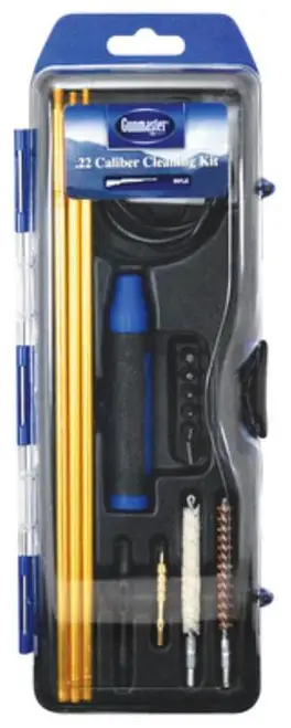This hybrid 22 Cal specific cleaning kit can be used to clean other calibers larger than 22 cal as well. The hybrid kit includes a hybrid multi-function handle, 3 piece rod, 33 pull rod, 22 cal brush and mop, 22 cal slot tip, 22 cal solid brass jag, brush and accessory adapter, 6 piece bit set and 25 cleaning patches.