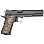 Letting full-power 10mm loads achieve their potential, the long-slide Kodiak features a 6-inch bushing-less bull barrel. Not only does that long barrel give the potent 10mm more time to build energy, but the sight radius that comes with it also allows for more accuracy as well as greater slide/barrel mass, reducing felt recoil and muzzle flip. Fully-adjustable sights are fitted with fiber optic rods for illumination, and a rail on the dustcover allows for the mounting of a light or laser. Reloads are made smoother by the addition of a mag well and an ambidextrous safety makes this 1911 a bit more lefty-friendly.