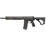 The Daniel Defense M4A1 features a M4A1 RIS II handguard CNC machined of 6061-T6 aluminum with a hard coat anodized finish. It has a chrome moly vanadium steel, chrome lined barrel with a permanently attached Daniel Defense flash suppressor. The upper and lower receivers are CNC machined of 7075-T6 aluminum with a hard coat anodized finish, while the rail panels are made from Santoprene and is heat resistant. The buttstock and pistol grip are constructed of polymer with a Soft touch overmolding. This model has a 14.5" barrel with a heavy phosphate coating, FDE finish handguard, and black receiver.