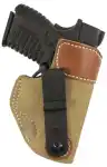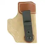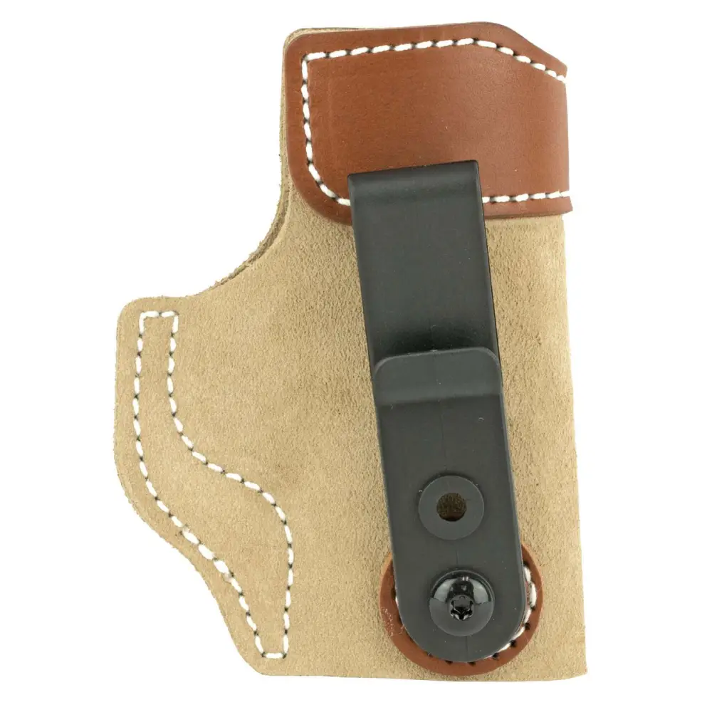 The DeSantis SOF-TUCK is a IWB/Tuck-able holster with adjustable cant. It can be worn strong side, cross draw or on the small of the back. It is built from soft, no-slip suede and reinforced at the top with premium saddle leather to aid in re-holstering.