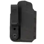 The Slim-Tuk is a minimal ambidextrous IWB holster fashioned from Kydex sheet. Its most unique features is a tuck-able 360 C-Clip, which affords the wearer unlimited mounting options. The hardware can easily be reversed to change from right to left hand.