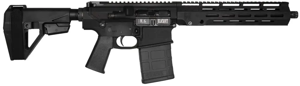 The Diamondback DB10 Pistol chambered in 8.6 Blackout offers a compact yet powerful solution for tactical and personal defense applications. Featuring a 12-inch barrel with a 1:3 twist rate, this pistol-length firearm is equipped with a Superlative Adjustable Gas Block for optimal performance and reduced recoil. Its 11-inch M-LOK V3 Anti-Rotation Rail provides ample space for accessories, while the Magpul MOE K Grip and SB Tactical SBA5 Brace ensure comfort and stability. Weighing 7.2 lbs, the DB10 Pistol is built on forged 7075-T6 aluminum receivers and includes a 20-round Magpul PMAG, making it a versatile and reliable choice for any scenario.